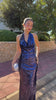 Vestido largo de tejido lentejuelas y de color azul marino muy ajustado al cuerpo. Lleva escote cascada atado al cuello y espalda totalmente descubierta. Es elástico y tiene forro. Ideal para Navidad, graduaciones, bodas, eventos...