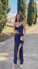 Vestido largo de tejido satinado y de color azul marino muy ajustado al cuerpo. Lleva escote pico muy favorecedor, corte sirena y tirantes regulables para poder ajustarlo a tu medida ideal. Tiene abertura en un lateral de la pierna. Muy elástico. Ideal para graduaciones, bodas, eventos...