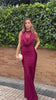 Vestido largo de tejido satinado y de color burdeos muy ajustado al cuerpo. Lleva escote cascada y detalle con bordado floral por delante y por detrás dándole un toque muy elegante. Es elástico. Ideal para graduaciones, bodas, eventos...
