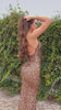 Vestido largo de tejido lentejuelas y de color bronce muy ajustado al cuerpo. Lleva escote recto, espalda toda descubierta, copas en el pecho y un corte muy sensual y discreto en un lateral que deja entrever la pierna. Es un vestido muy elegante y elástico, realza todas tus curvas. Ideal para graduaciones, bodas, eventos...